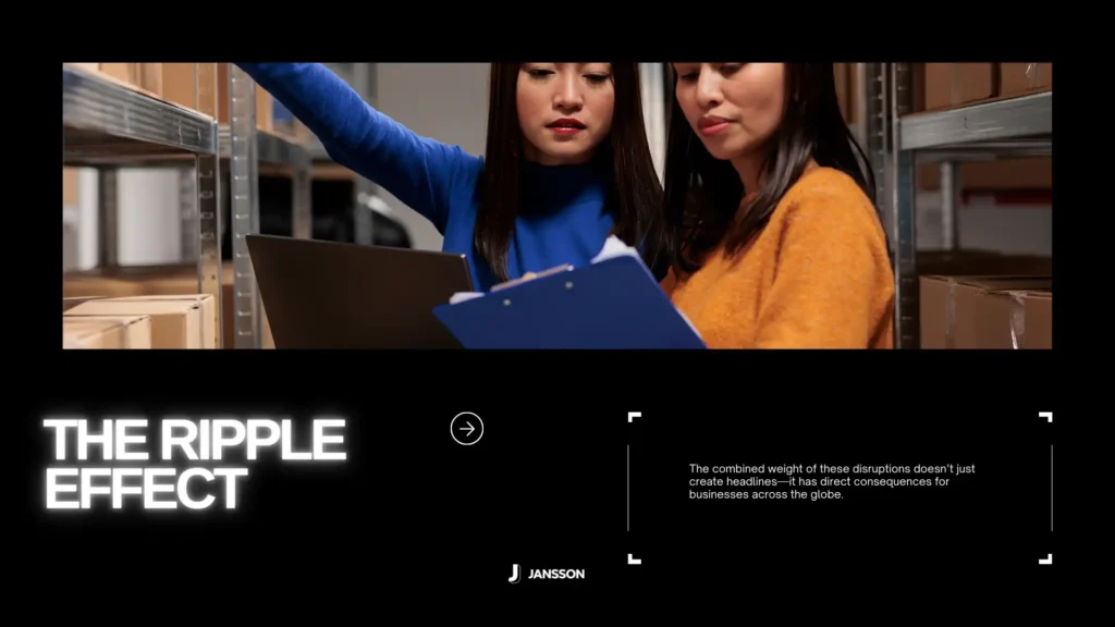 The combined weight of these disruptions doesn’t just create headlines—it has direct consequences for businesses across the globe.